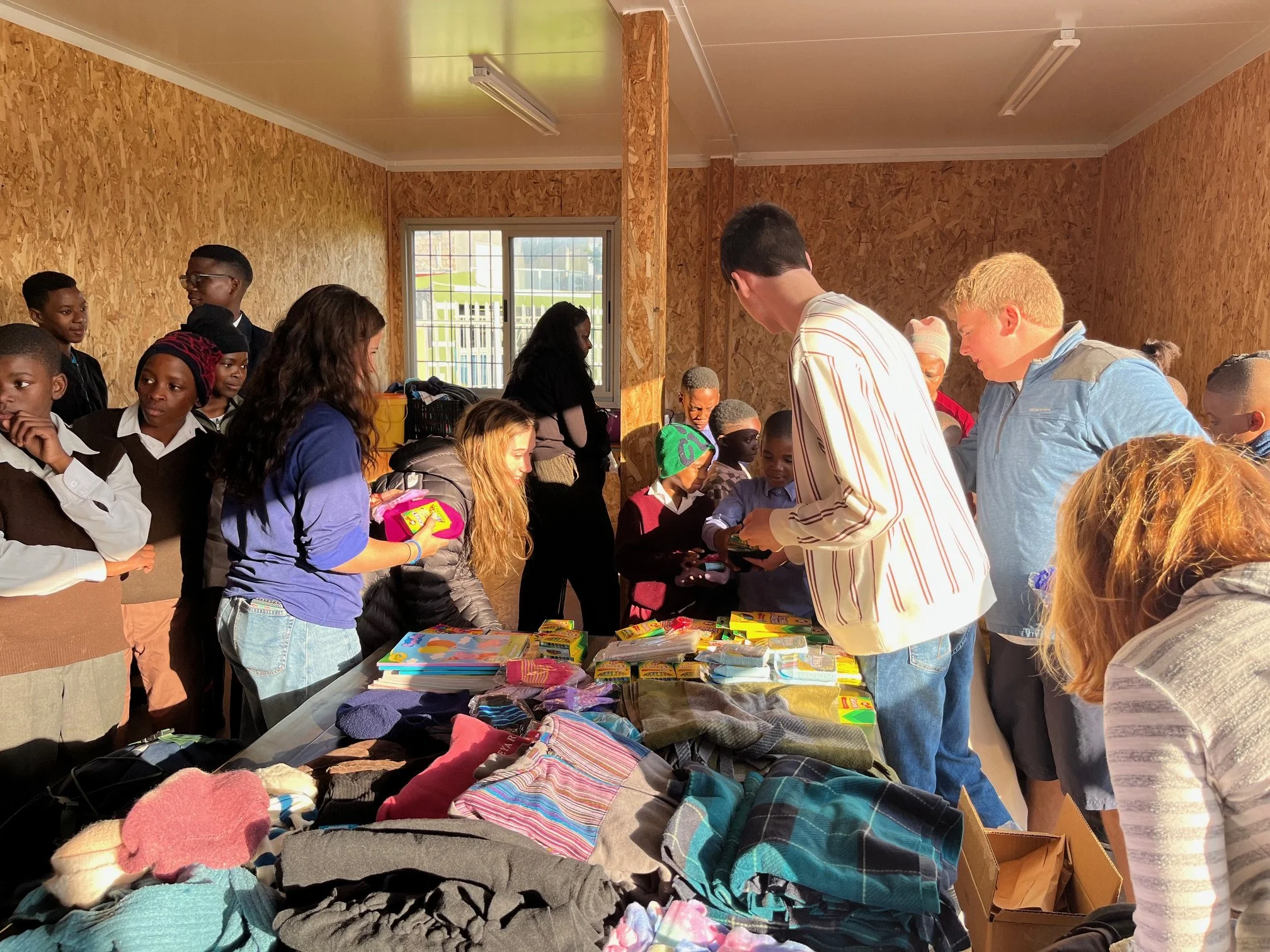 On the morning of the third day, our group was split up into three groups. The under-18 youth, which included Graeme, Dillon, Kaelan, Austin, and Annabelle, attended Bergvliet High, a well-resourced public school, with the youth they were staying with. Greg, Jacqui, and I attended Heathfield High, an under-resourced public school only one mile away from Bergvliet. We witnessed classrooms that should hold twenty kids instead being stuffed with fifty-six students with only one teacher. The remaining adults visited a dementia care center where they volunteered their time to give the employees a rest from their tiring work. In the afternoon, we went to the Pediatric Oncology Department at Tygerberg Hospital. The group heard from the president of Ari’s Cancer Foundation, which supplies cancer patients—mostly youth—with pain medications and other necessities that the hospital budget does not cover. He explained that the foundation was even more crucial now that some funding to the hospital from the United States had recently been, or will shortly be, suspended. After a presentation about the significant impact of the foundation, we volunteered our time by assisting with cooking, entertaining pediatric patients, and spending time with older patients. The joy and hope these patients radiated was unforgettable and truly inspiring. With the kids, we used toy cars, played air hockey, and colored. The older patients taught us how to play dominos, which may sound like a quiet way to spend the afternoon, but it got unbelievably competitive and loud in a flash! We ended our time there with many songs the patients sang for us with a guitar accompaniment. Ari’s Cancer Foundation was another recipient of one of our monetary donations.